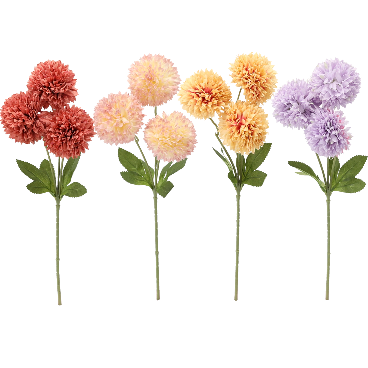 Kunstig gren – buket med 3 georginer, 43 cm, farvemix
