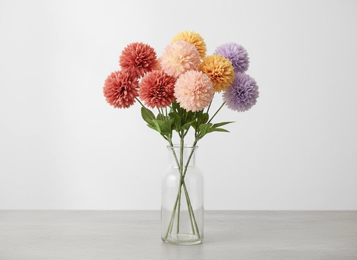 Bring friskhed og farver ind i hjemmet med den kunstige georginegren, som ser levende ud og samtidig ikke kræver nogen pleje. Mix af nuancer i rosa, fersken, gul og lilla passer let til forskellige boligstile – fra moderne til klassisk.