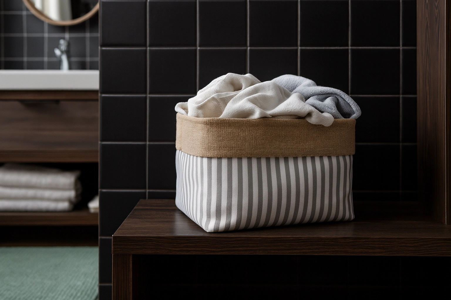 Bløde sider og forstærkede kanter egner sig også til opbevaring af håndklæder eller toiletartikler på hylder på badeværelset.