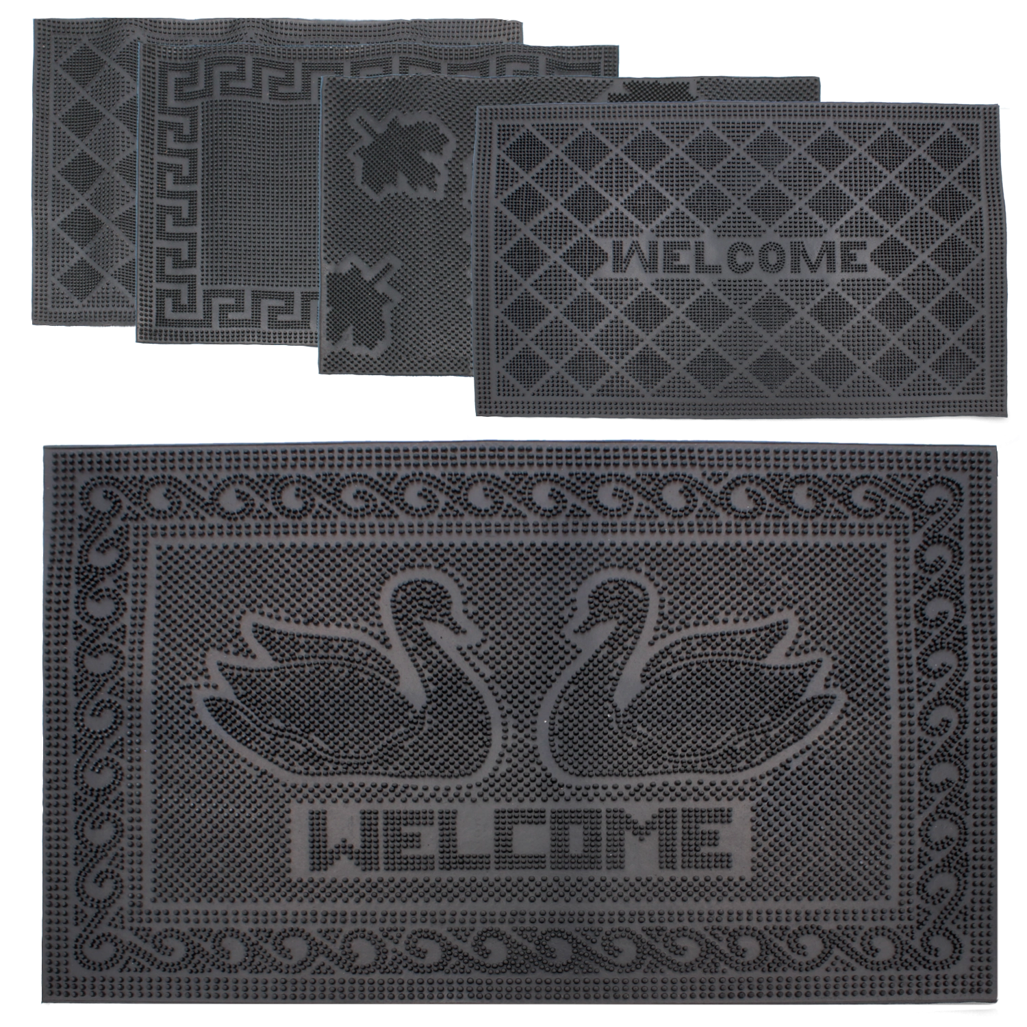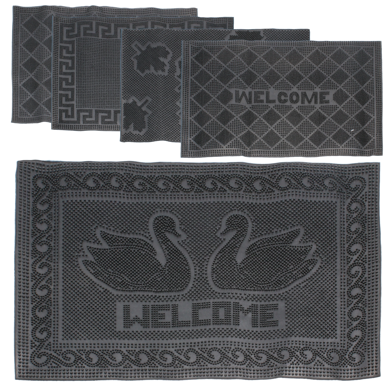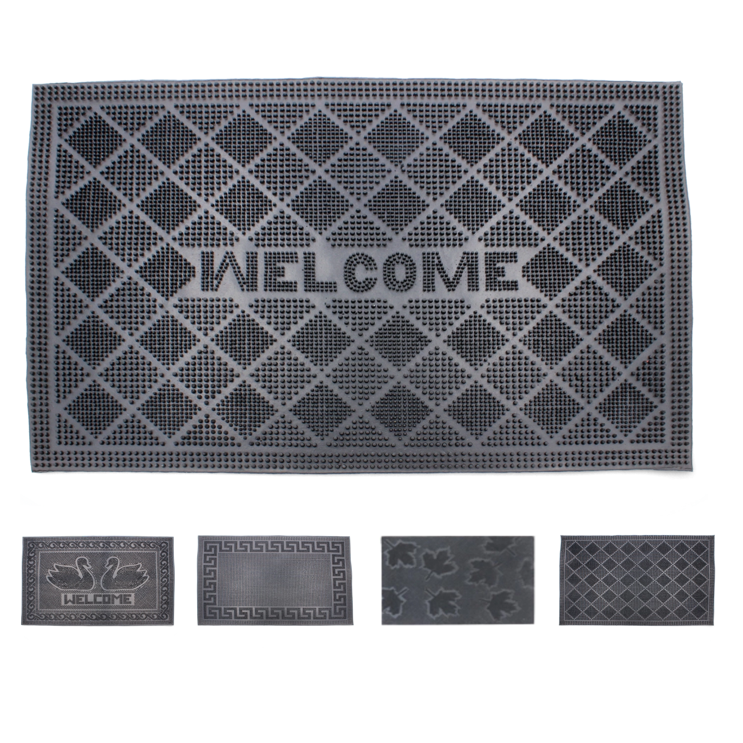 Praktisk gummimåtte i størrelsen 40 × 60 cm, som pålideligt holder snavs ude af dit interiør. Den er fremstillet af slidstærk gummi, har en skridsikker konstruktion for et sikkert skridt og drænhuller til effektiv bortledning af vand og snavs. Velegnet til indendørs og udendørs brug i både hjem og erhverv.