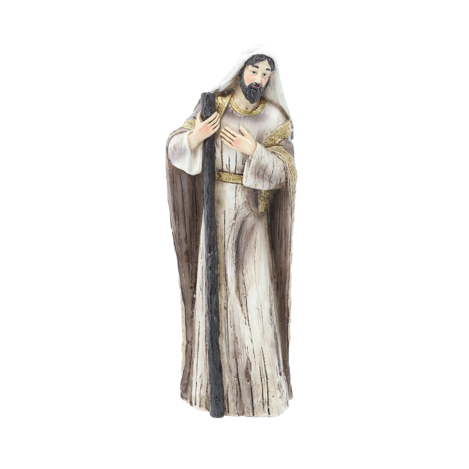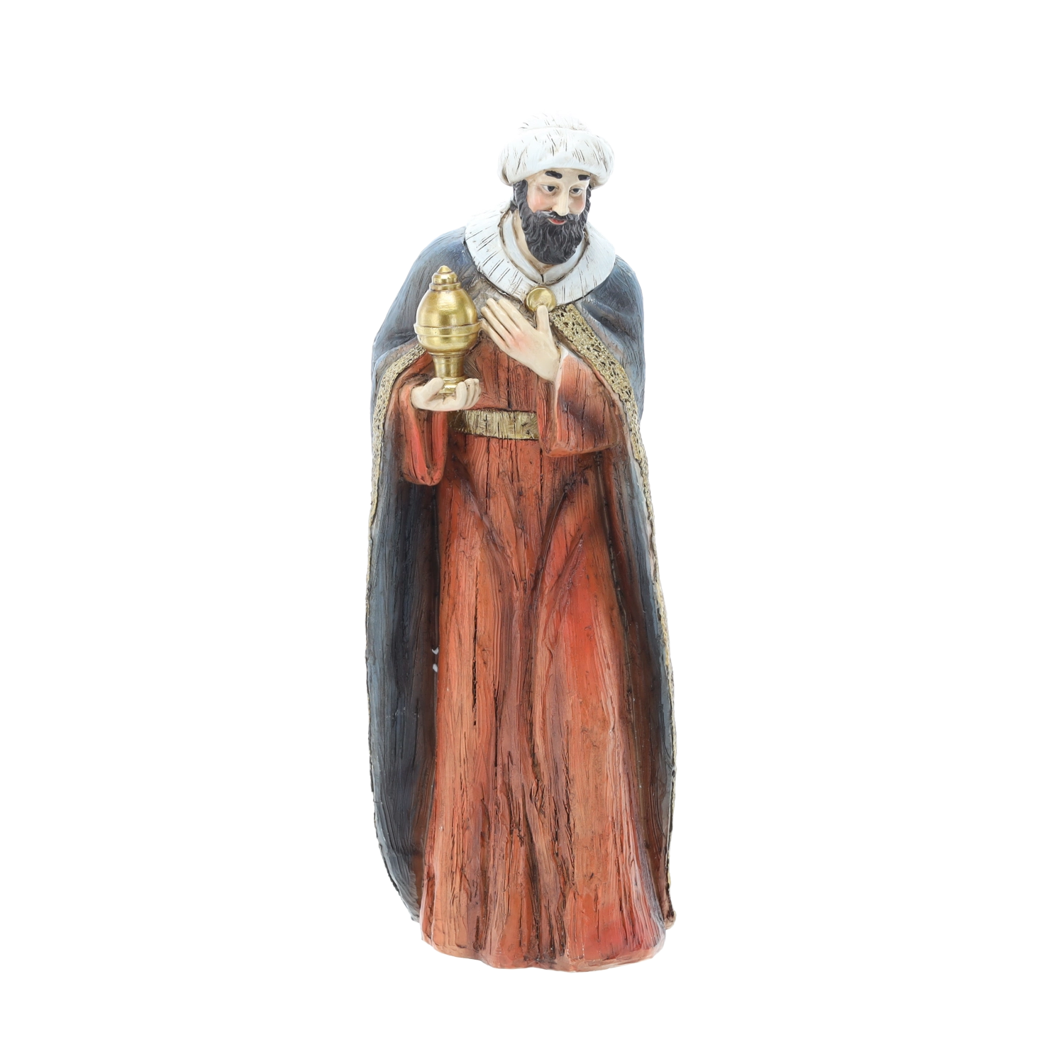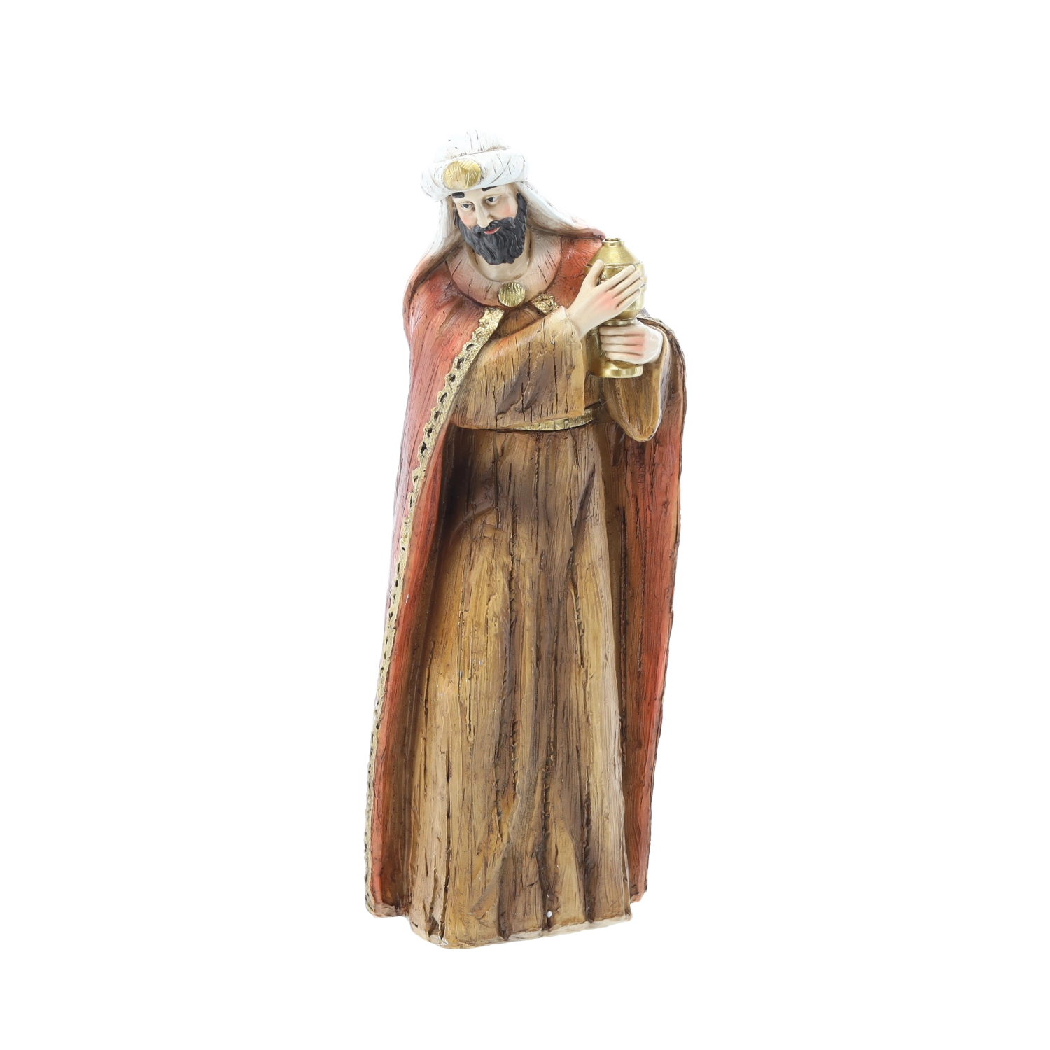 Fine ansigtstræk, foldninger i klæderne og rige farver giver krybben en unik charme og et tidløst udtryk, velegnet til både klassiske og moderne interiører.