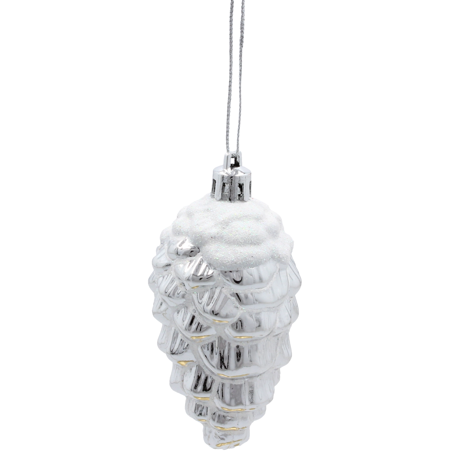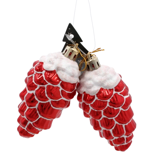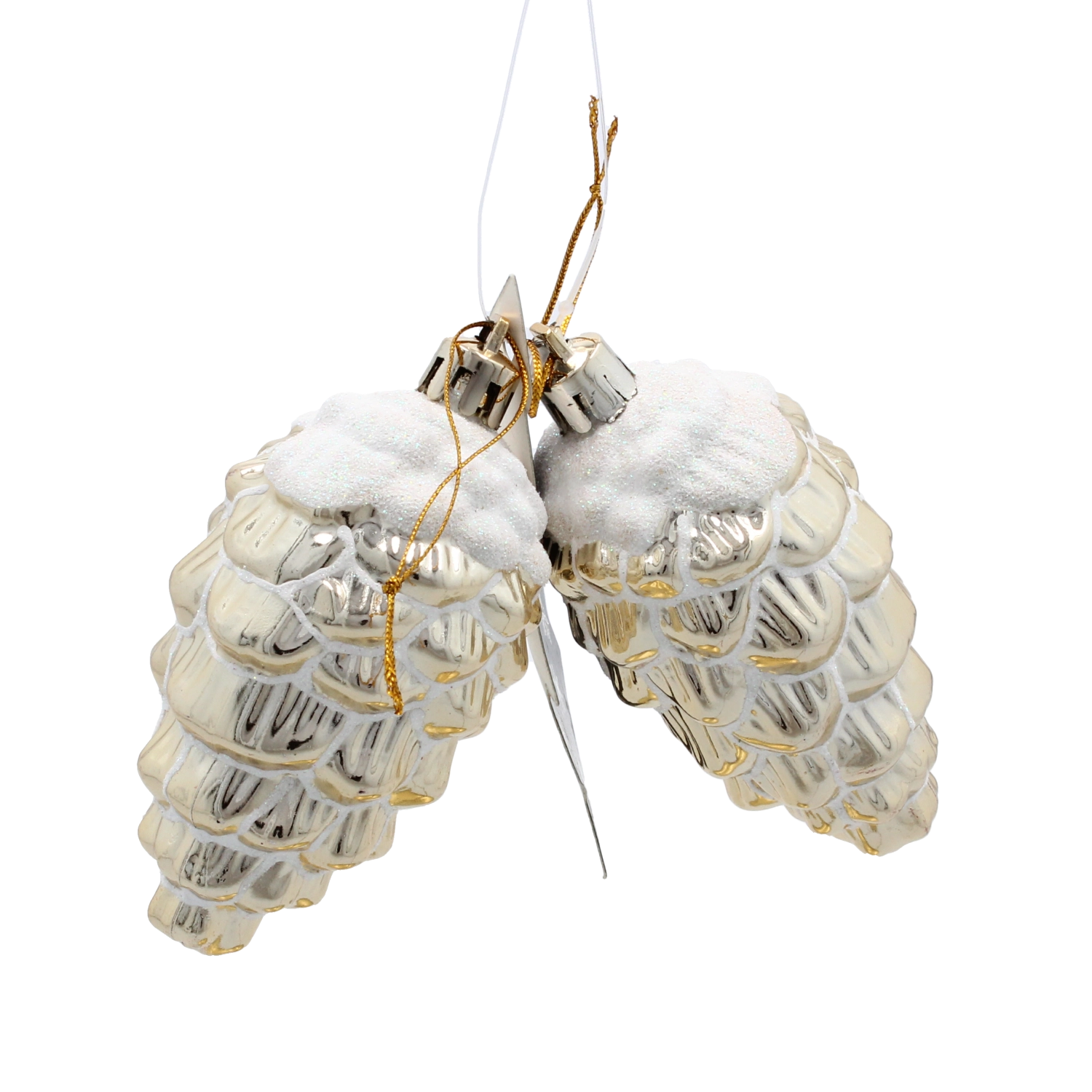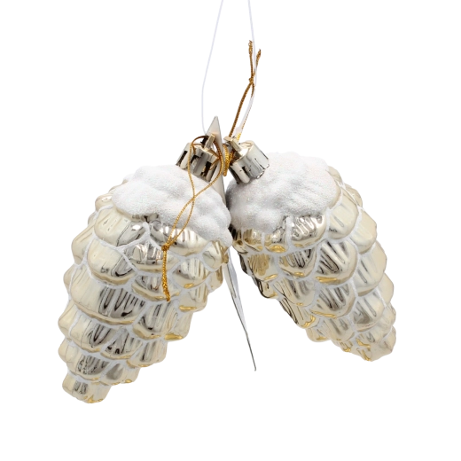 Hver kogle har en højde på 9 cm og er udstyret med en sølvfarvet snor for hurtig og sikker ophængning. I pakken finder du to ornamenter i populære julefarver – guld, sølv og rød – som nemt kan kombineres med anden udsmykning.