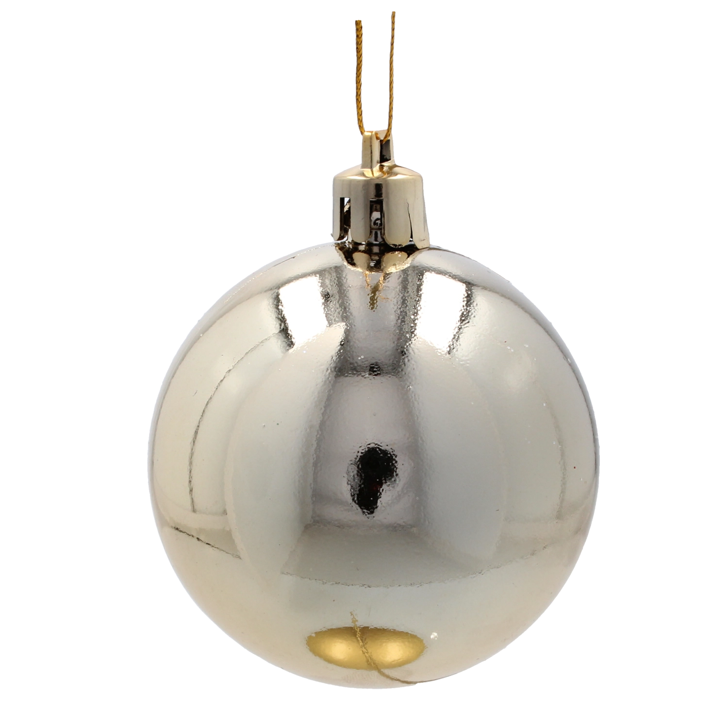 Dette alsidige sæt indeholder en blanding af blanke, matte og glitrende overflader i traditionelle farver, som passer perfekt til både moderne og klassiske dekorationer. Takket være den lette, men holdbare plast hænges ornamenterne nemt op og minimerer samtidig risikoen for at gå i stykker.