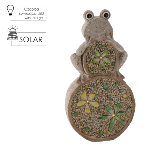 Giv dit udendørsmiljø et strejf af magi med en elegant dekoration – en frø på en sten med let struktureret overflade og LED-bagbelysning. Aftenlyset skaber en behagelig stemning og fremhæver mosaikdetaljerne, så figuren naturligt bliver et blikfang.