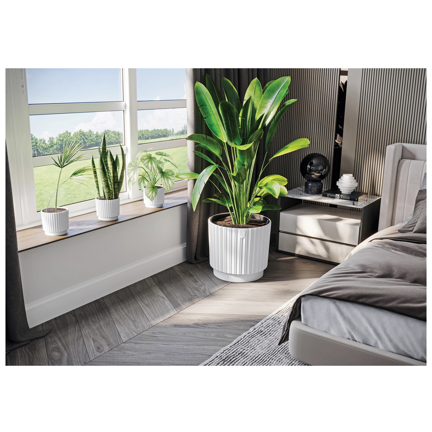 Elegant blomsterpotte af genanvendt plast med en diameter på 22 cm i mat hvid er en stilfuld og bæredygtig løsning til dine planter. Den byder på moderne minimalistisk design, frost- og vejrbestandighed samt nem vedligeholdelse. Med et volumen på 6,74 l er den ideel til blomster, krydderurter og mindre buske både inde og ude.