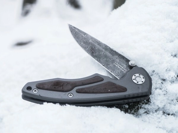 Dobbeltsiddede tommelstifter for nem manuel åbning og Linerlock-lås for sikker fastlåsning under brug.