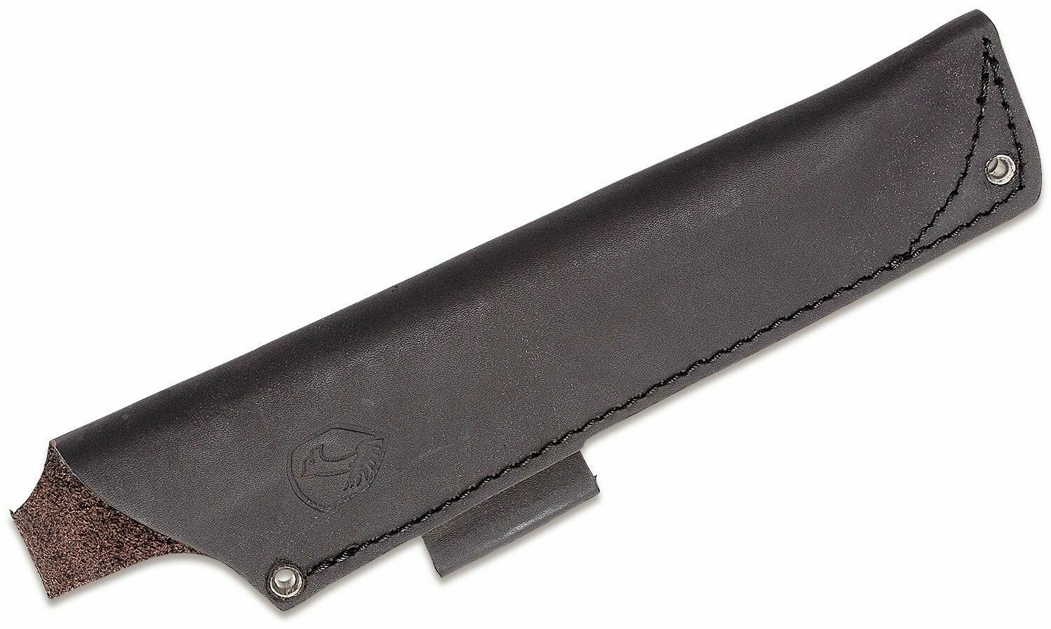 Den slidstærke læderskede med syninger beskytter bladet og gør det nemt at hænge den i bæltet for hurtig adgang i felten.