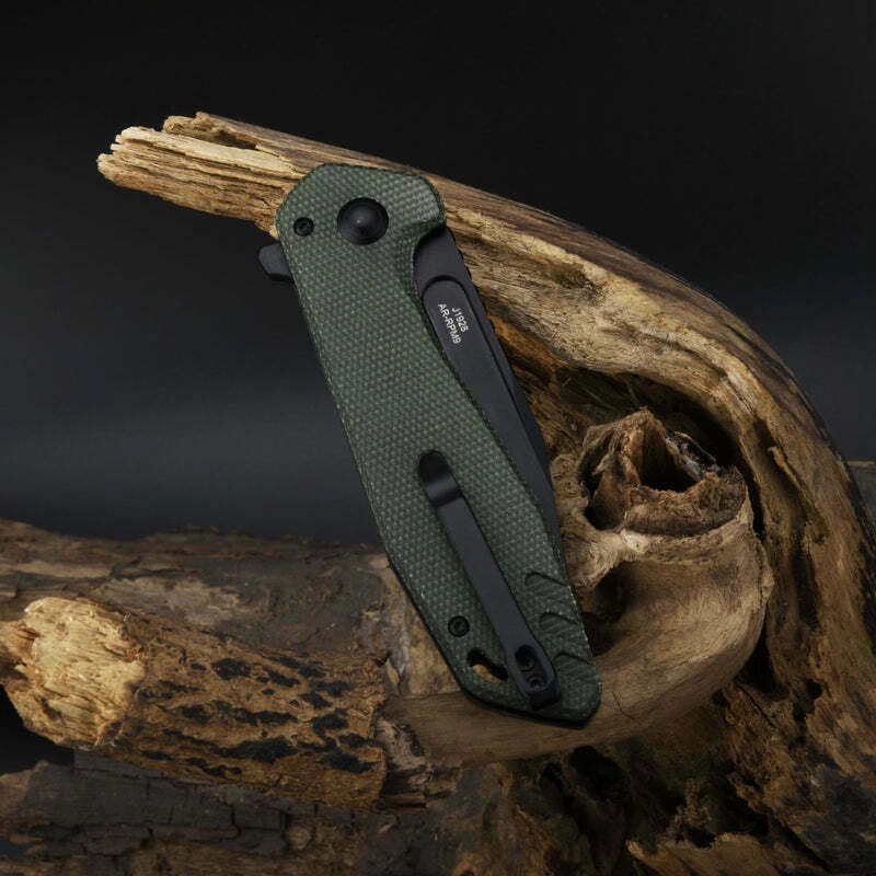 Håndtaget i robust Micarta i grøn nuance giver et behageligt, sikkert greb – selv i vådt vejr. Den lavprofilerede lommeklips gør daglig bæring let og holder kniven sikkert i lommen. Riff Green er en pålidelig makker til arbejde, vandring og EDC – overalt hvor du sætter pris på kombinationen af ydeevne og komfort.