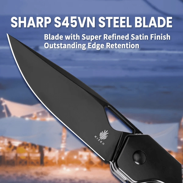 - Premium-stål CPM‑S45VN – høj ægtholdbarhed og nem vedligeholdelse.