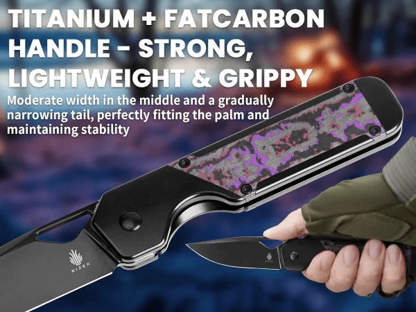 Den elegante EDC-kniv KIZER Militaw forener en klassisk drop point-form med et moderne design og førsteklasses materialer. Den tilbyder CPM-S45VN-stål med DLC-belægning for langvarig skarphed og holdbarhed, hurtig åbning med flipper og tommelfingerhul samt tryghed med framelock-lås. Det titaniummede skæfte med Fatcarbon Purple Haze og dybbæret lommeklip gør kniven til et ideelt valg til hverdagsbrug, værksted og outdoor.
