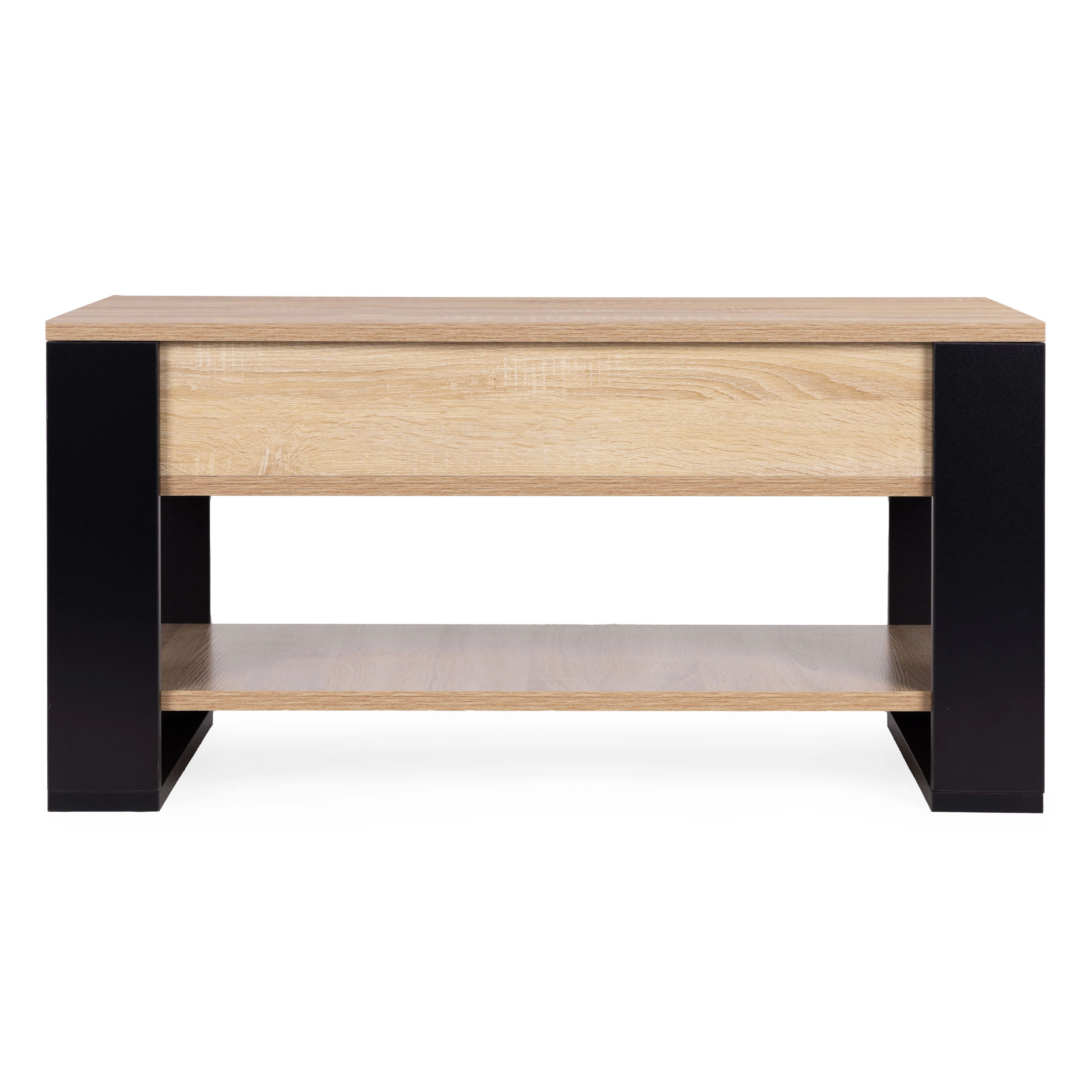 Det elegante sofabord kombinerer et moderne look af træ og sorte elementer med høj funktionalitet. Takket være den højdejusterbare hæv-/vippeplade (45–59,5 cm) kan du nemt tilpasse den til sofahøjden – til arbejde på laptop, servering af forfriskninger eller hyggestunder foran filmen.