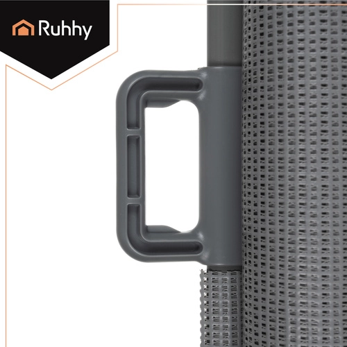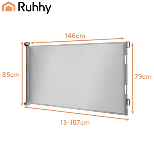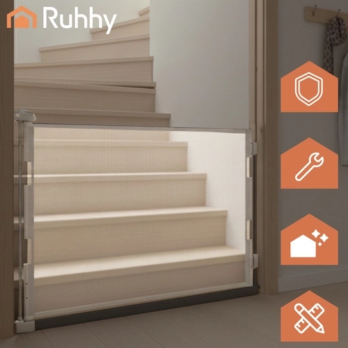 Den praktiske rullegrind RUHHY tilbyder jævn udtræk op til 157 cm, så du nemt kan tilpasse den til både smalle og brede åbninger. Tærskelfri løsning minimerer risikoen for at snuble, og når den er rullet ind, fylder den minimalt. Kombinationen af PVC-skærm, aluminiumsrør og robuste plastdele gør grinden stabil og modstandsdygtig til daglig brug.