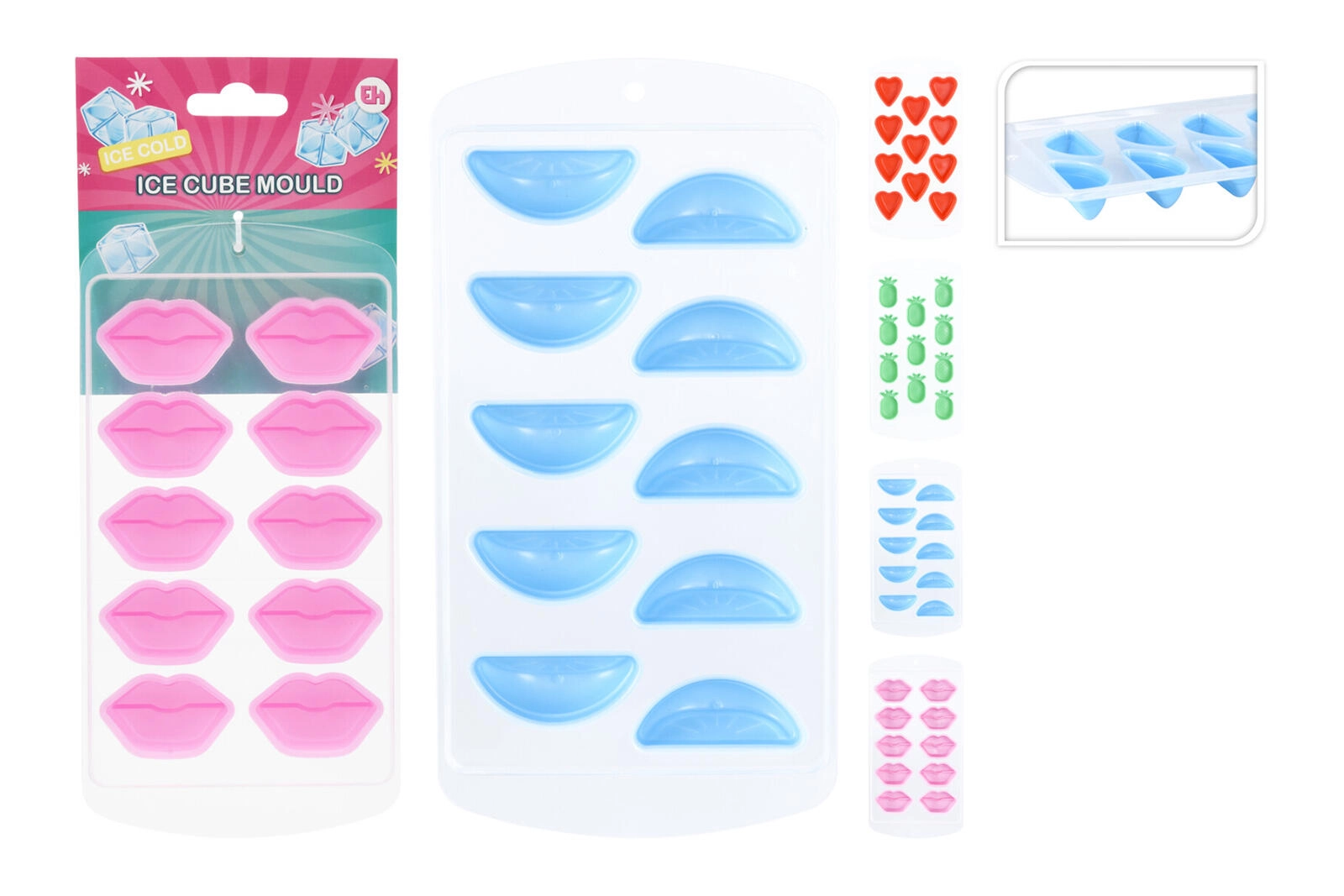 Pift dine drinks op med originale isterninger formet som hjerte, læber, ananas og halvmåne. Formen måler 21,5 × 11 × 2 cm og er fremstillet i en kombination af plast og kvalitets, fleksibel silikone, som sikrer hurtig frigivelse af isterningerne uden at de knækker.