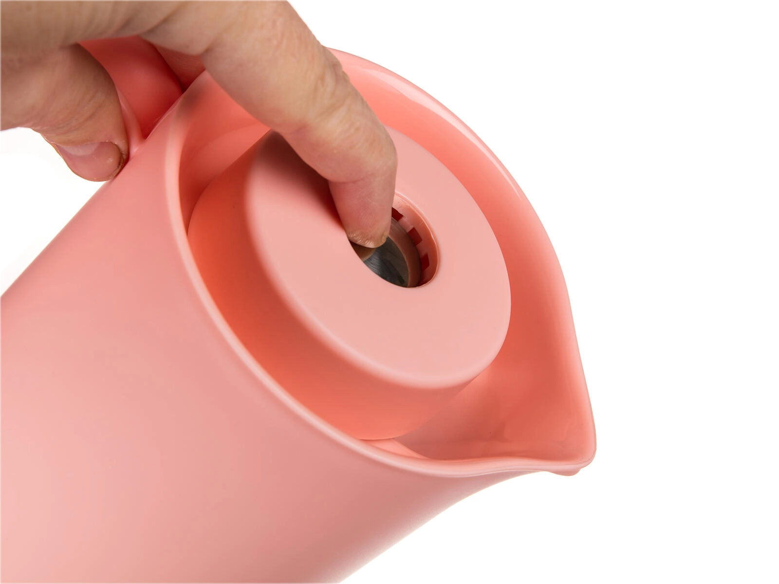 Ergonomisk håndtag og tud med låg sikrer behagelig hældning uden spild og dryp.
