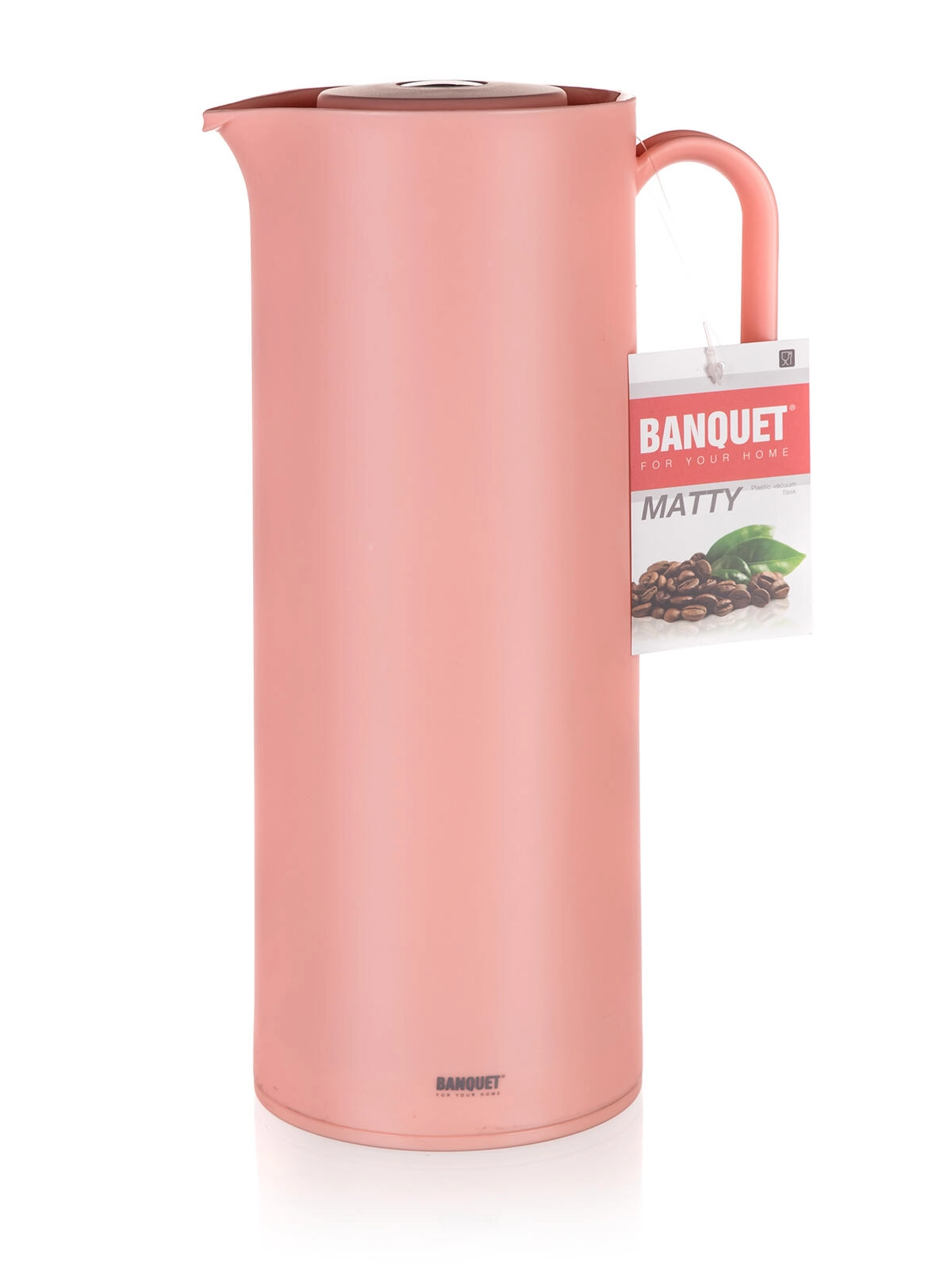 Den stilfulde rosa termokande BANQUET Matty med en kapacitet på 1 l holder dine drikkevarer varme eller kolde i lang tid. Den har en termisk glasindsats, et robust plastikhus og et praktisk låg for behagelig hældning uden at spilde. Ideel til kontor, hjemmet og servering ved besøg.