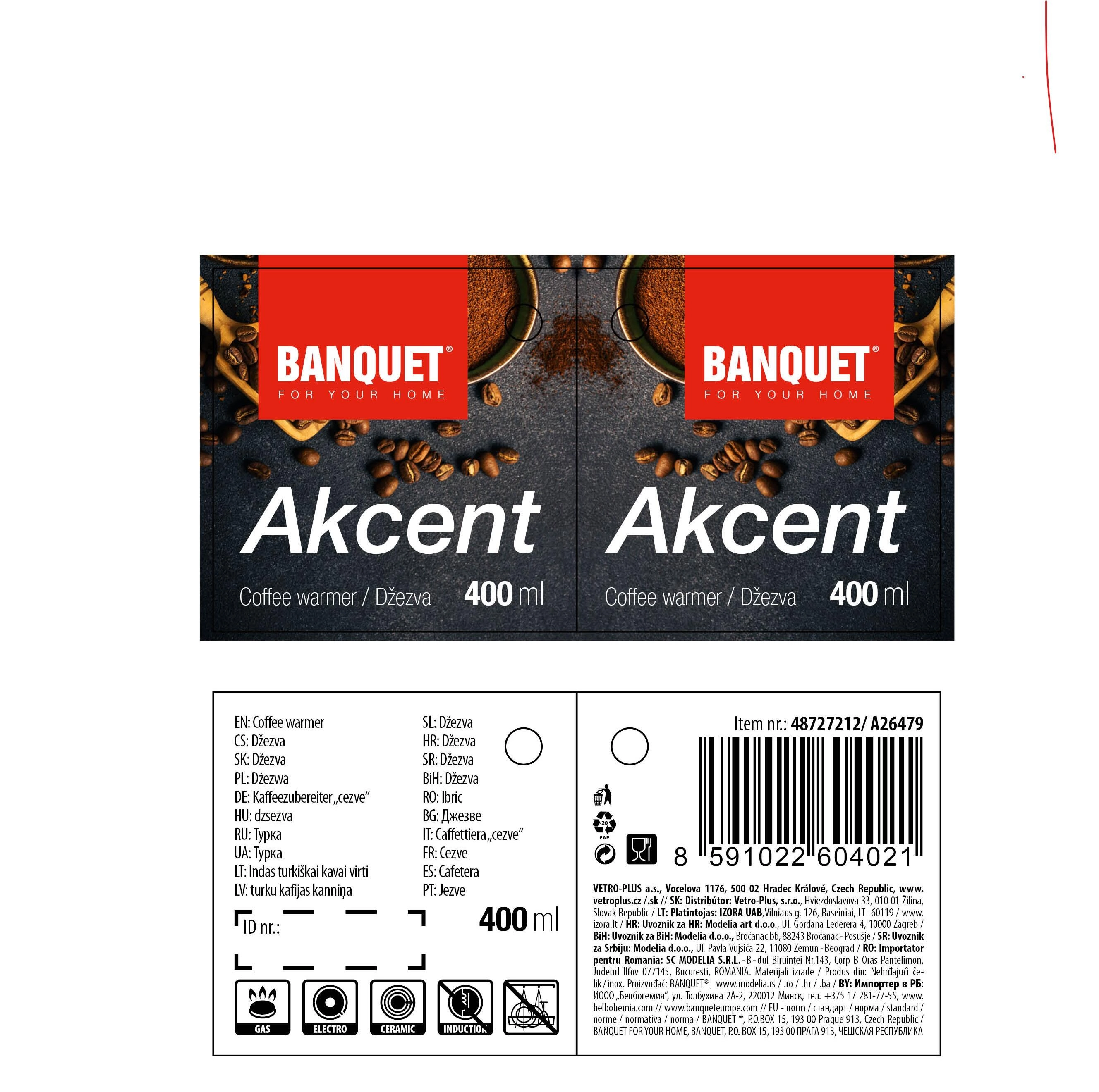 Praktisk rustfri djezva 400 ml AKCENT til tilberedning af ægte arabisk og tyrkisk kaffe. Holdbar konstruktion i rustfrit stål, ergonomisk håndtag og hælder tud for ren påfyldning sikrer nem brug og kaffe med en uforglemmelig rig smag og aroma.