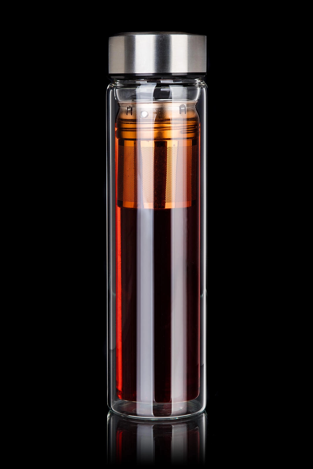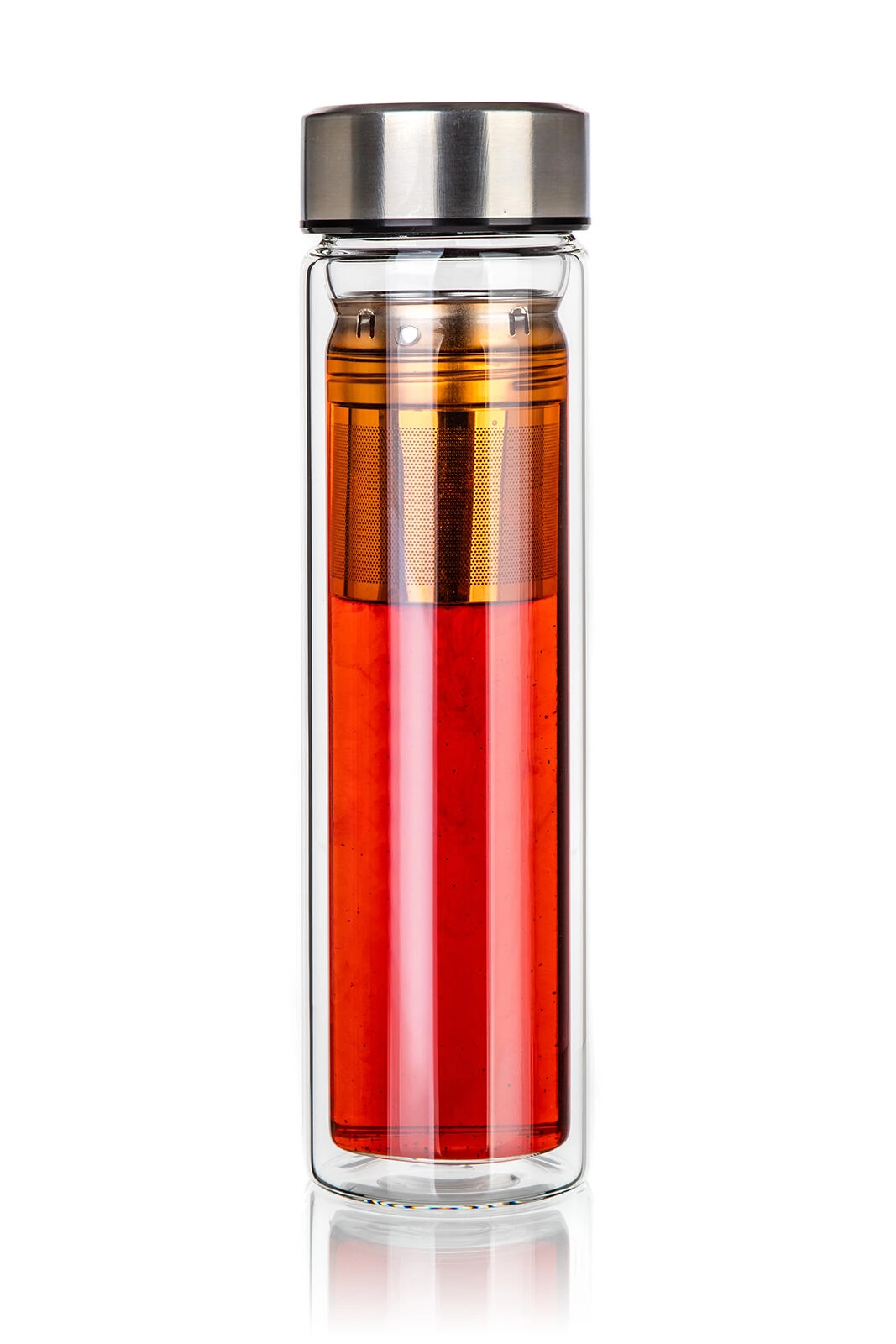 Den integrerede si i rustfrit stål gør det nemt at trække løste, urter eller tilberede frugtinfusioner direkte i flasken.