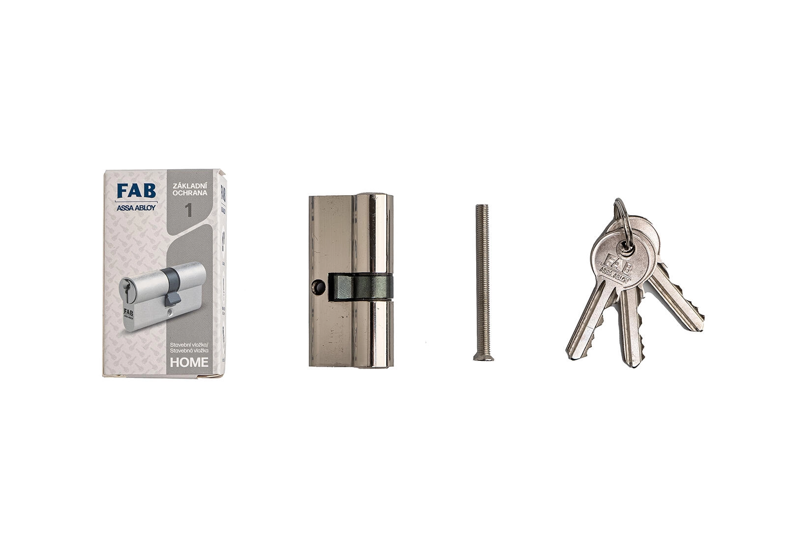 Den praktiske bygningscylindriske indsats FAB 1 HOME i størrelsen 30/35 mm giver et grundlæggende sikkerhedsniveau under byggeperioden. Den har et låsesystem med 5 stifter, hus og tromle af zinklegeringen Zamak og leveres med 3 stålnøgler for hurtig og pålidelig anvendelse.