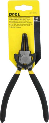 Praktiske DREL-tænger til arbejde med udvendige låse- (seeger) ringe i bøjet udførelse med en længde på 180 mm. Ideelle til præcis montering og afmontering af ringe, fastgørelse af lejer og arbejde på aksler. Tilbyder nem håndtering, fast greb og pålidelig kontrol under arbejdet.