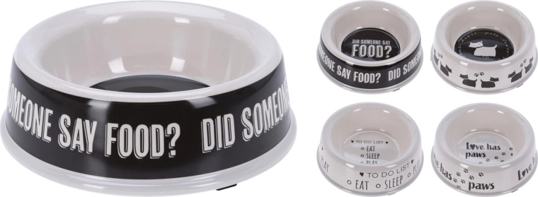 Praktisk og hygiejnisk skål til kæledyr i holdbar melamin med en diameter på 25 cm. Takket være skridfri gummifødder forbliver den stabil selv ved ivrig spisning. Let at rengøre, let i vægt og fås i et mix af stilfulde dekorer, så den passer til indretningen.