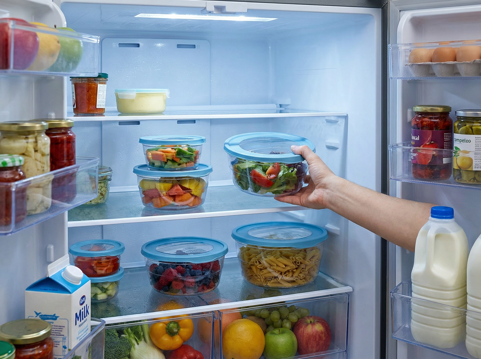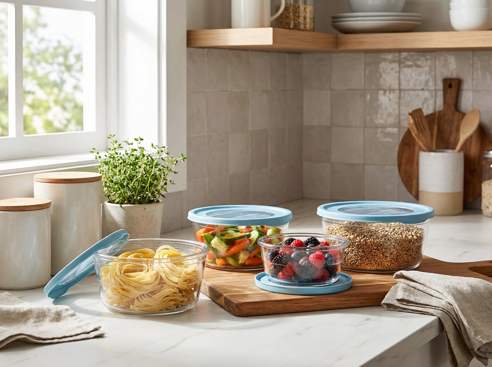 Hver dåse er designet til nem organisering af fødevarer – fra frugt og grønt til pasta og saucer. De gennemsigtige beholdere muliggør hurtigt overblik over indholdet og hjælper med at undgå madspild.