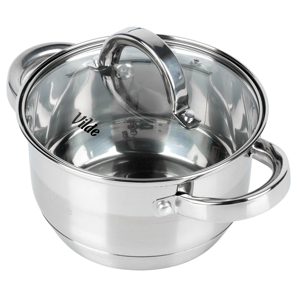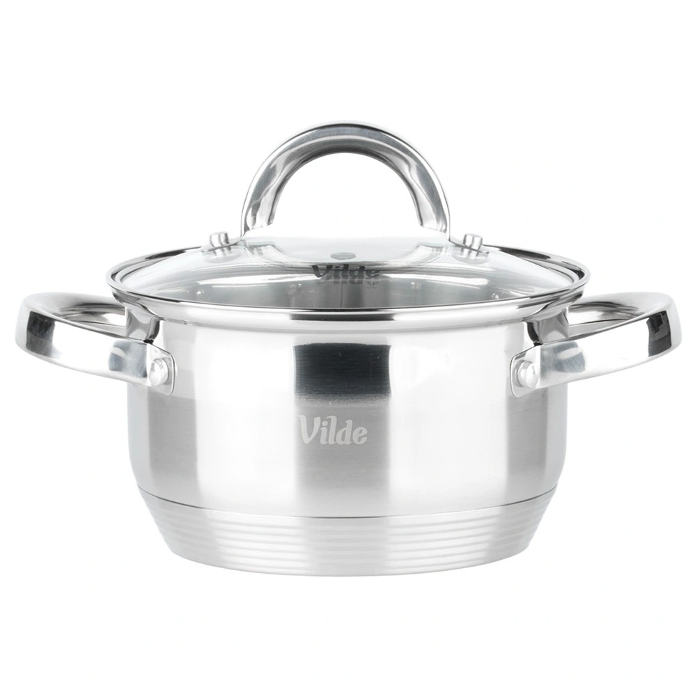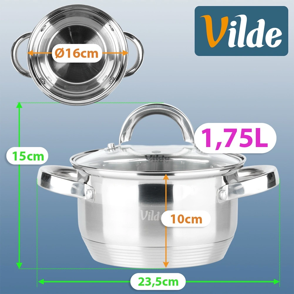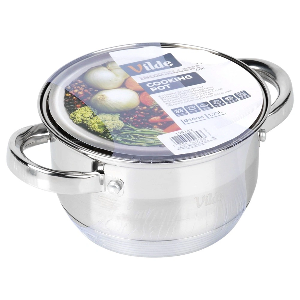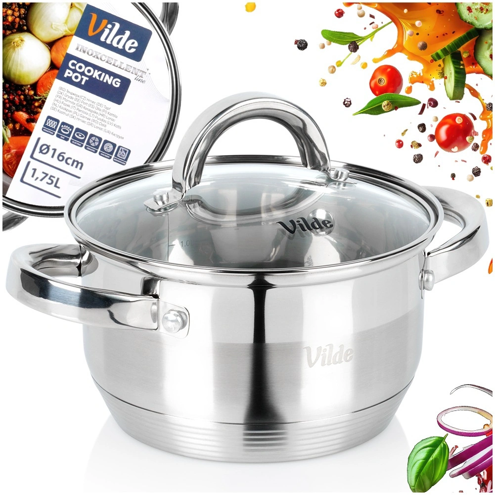 Praktisk gryde i rustfrit stål med volumen 1,75 l og diameter 16 cm med glaslåg med dampventil. Takket være akutermisk bund Maximum Power varmer den hurtigt og jævnt op, er energiøkonomisk og velegnet til alle typer komfurer, inklusive induktion. Tåler ovn op til 150 °C og kan vaskes i opvaskemaskine. Originalt produkt fra Vilde – Inoxcellent Line.