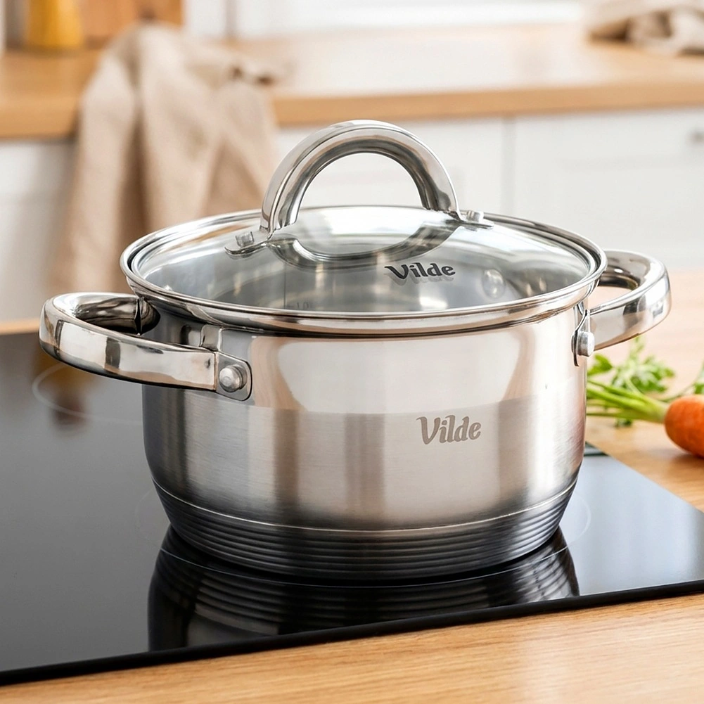 Ideel til supper, saucer, grøntsager og til opvarmning af retter. Det elegante udseende gør det muligt at servere direkte på bordet. Original Vilde – Inoxcellent Line, fremstillet efter europæiske standarder.