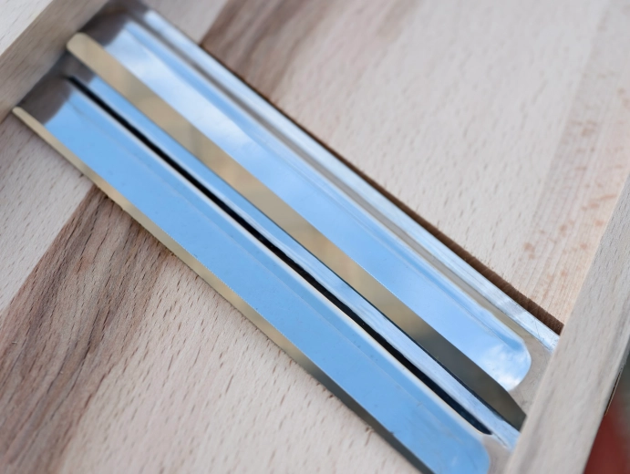 Skralderen er designet til hurtig snitning uden besvær, og knivene kan nemt udskiftes ved behov. Det naturlige materiale er hygiejnisk og slidstærkt og holder i mange år ved korrekt vedligeholdelse.