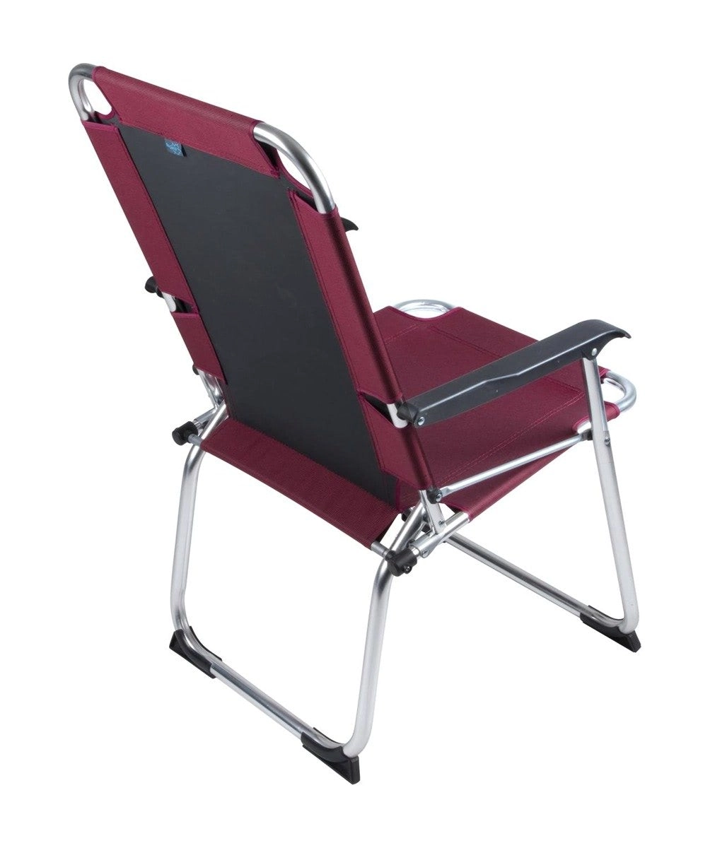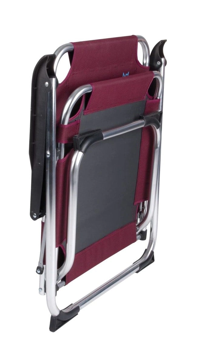 Med en vægt på kun 2,2 kg og mål på 65 × 55 × 7 cm sammenklappet er stolen nem at bære og opbevare. Maksimal belastning 100 kg, komfortabelt sæde på 44 × 43 cm og sædehøjde på 40 cm sikrer komfort selv ved længere tids siddning. Den elegante bordeauxfarve passer perfekt til dit outdoorudstyr.