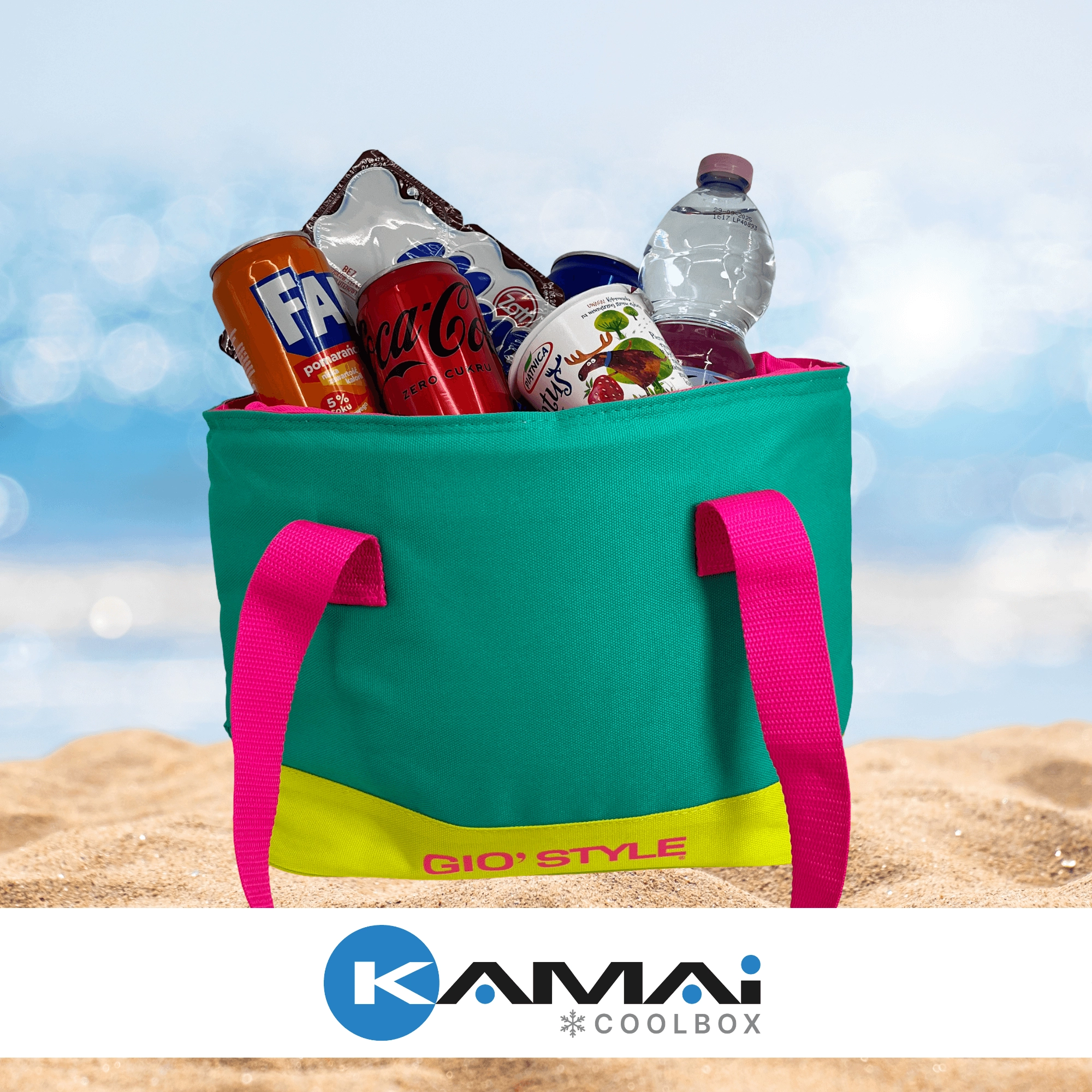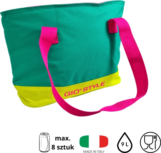 Den stilfulde og praktiske termotaske GIO’ STYLE Kamai med en kapacitet på 9 l holder dine drikkevarer og fødevarer friske længere takket være effektiv isolering. Den tilbyder kompakte mål, vandtæt indvendig sektion og behagelig bæring over skulderen. Ideel til indkøb, strand, picnic og udflugter.