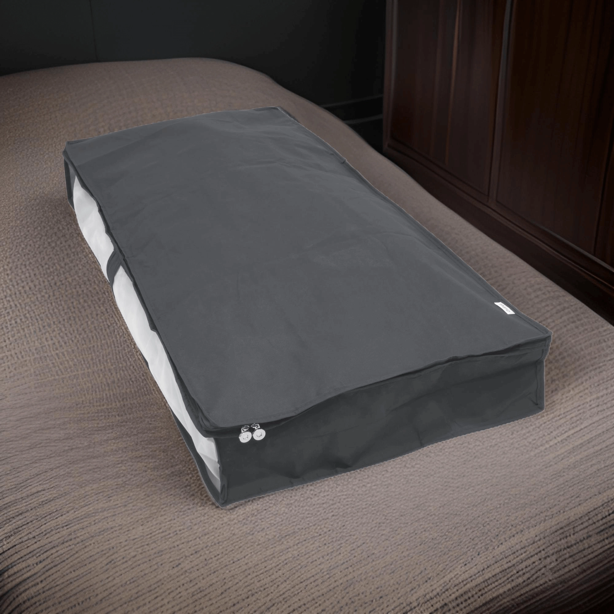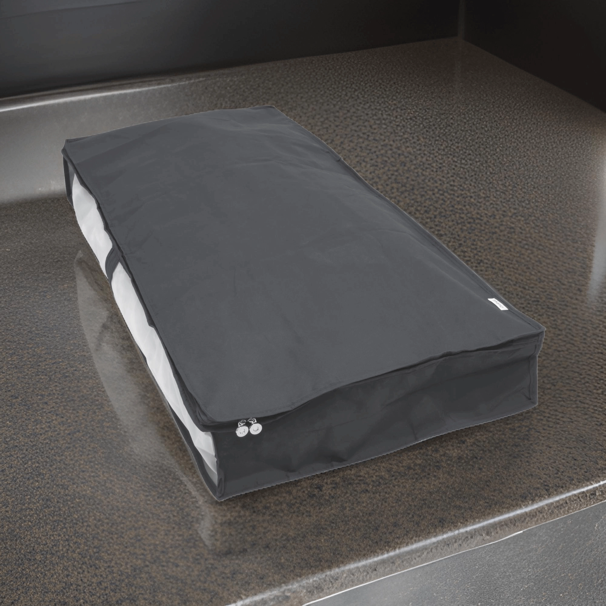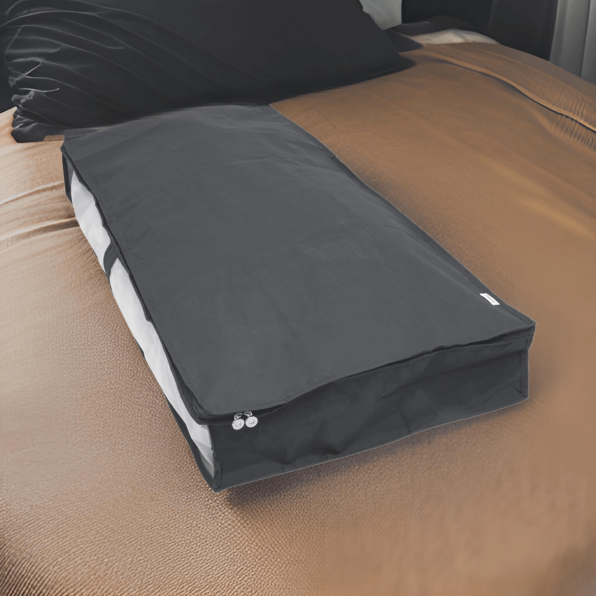 Hold orden i soveværelset og garderoben med en praktisk under-sengsorganizer i elegant grå. Den beskytter tøjet mod støv, har en gennemsigtig front for hurtigt overblik og en lynlås hele vejen rundt for nem adgang. Ideel til sæsonbetonet tøj, sengetøj og tekstiler.