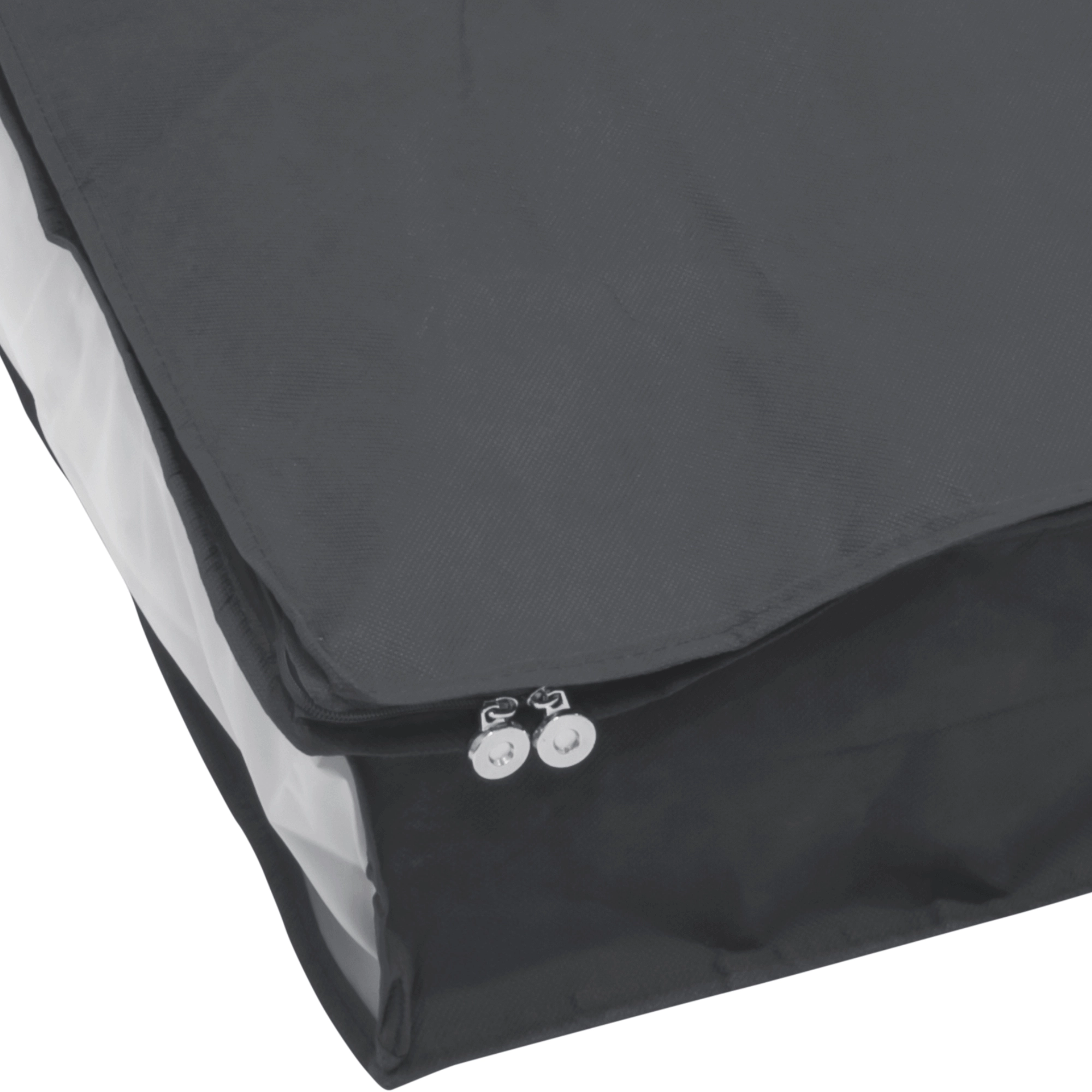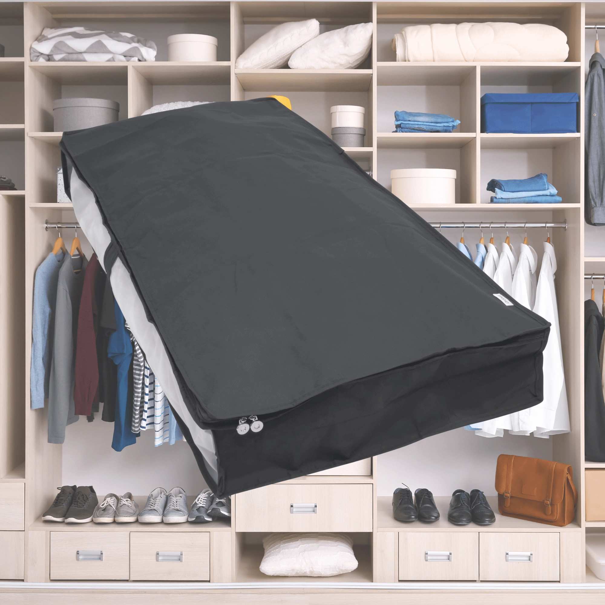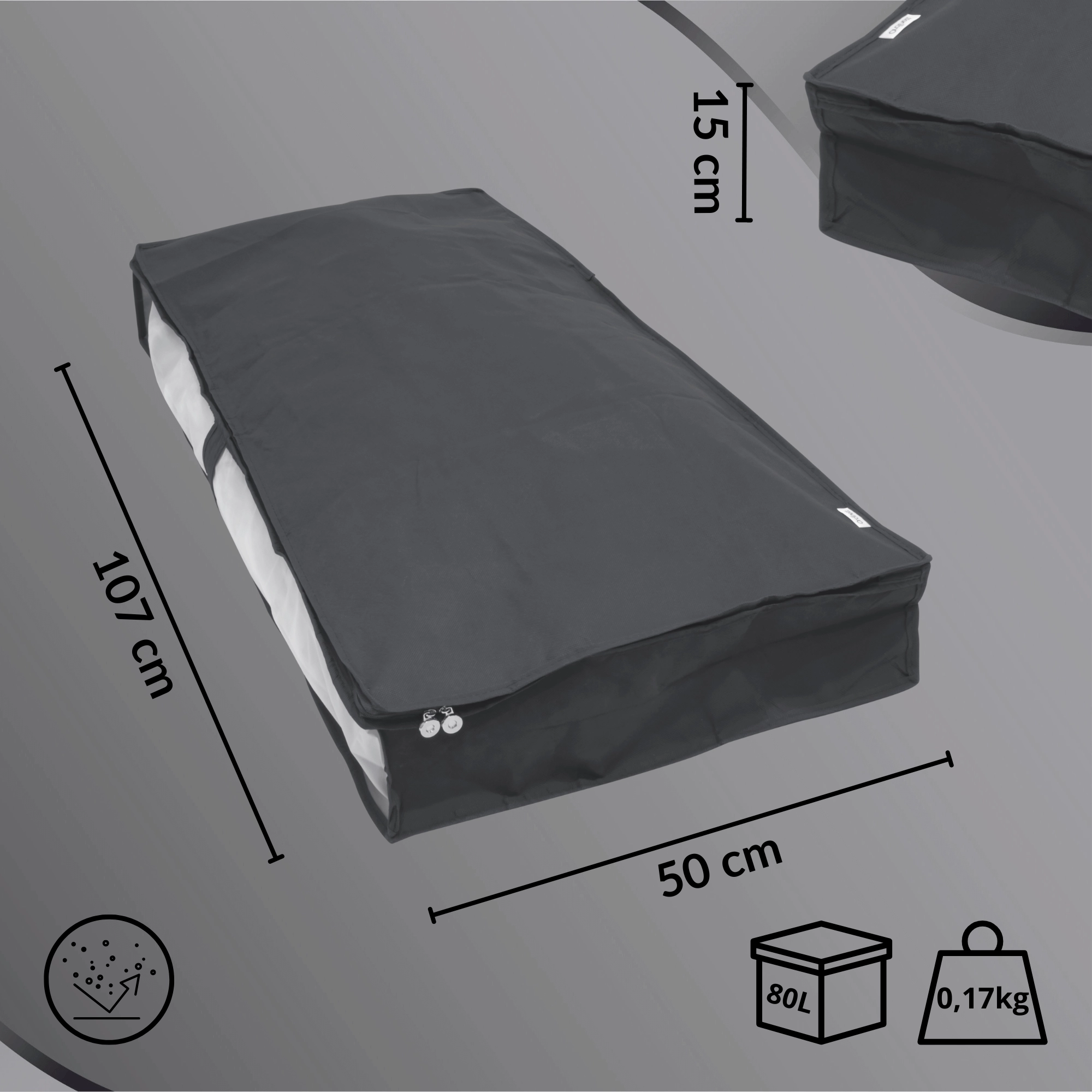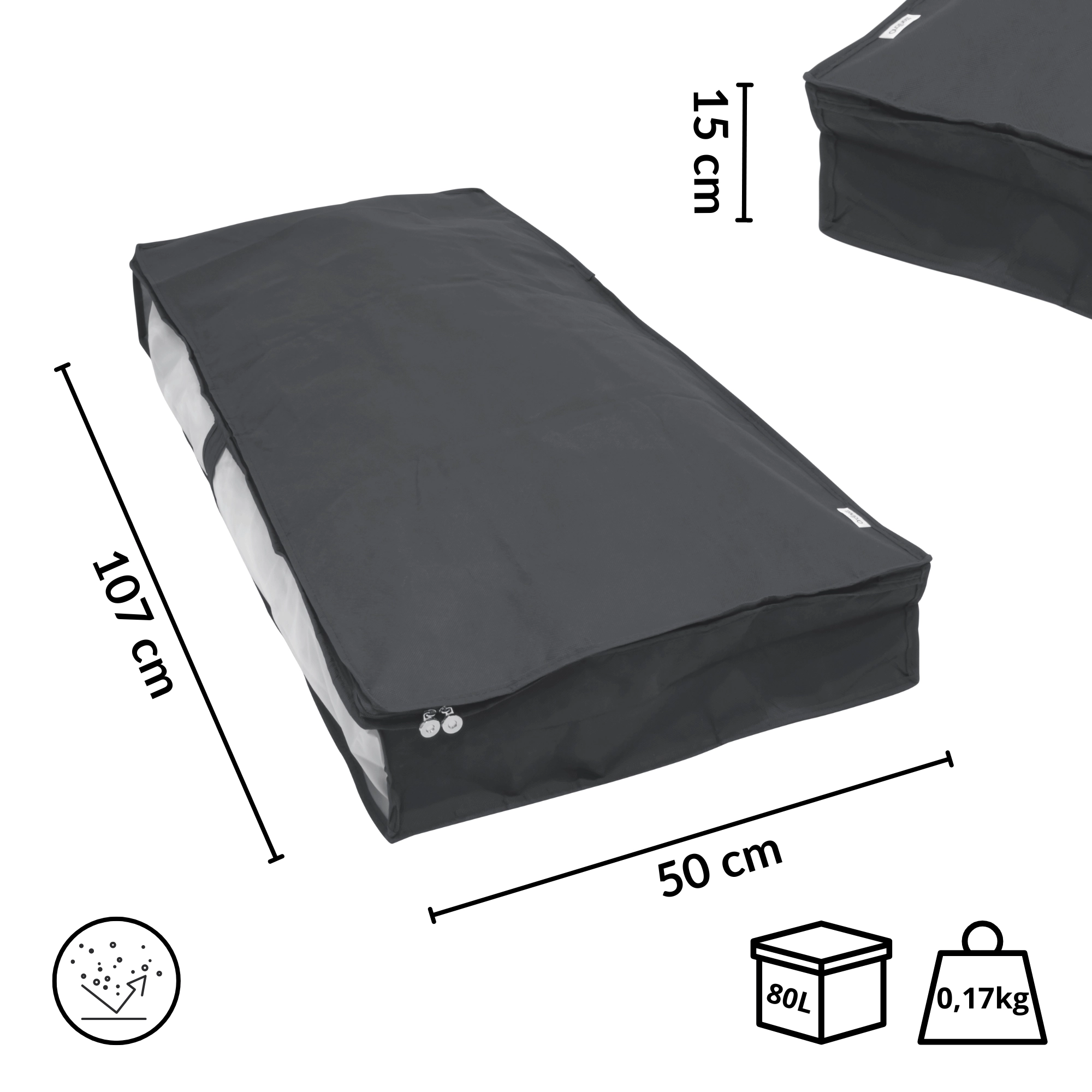 Det universelle grå design passer til enhver indretning og beskytter effektivt dine ting mod støv. Målene 107 × 50 × 15 cm er perfekte til dyner, tæpper, sweatre eller sæsonbetonet tøj.