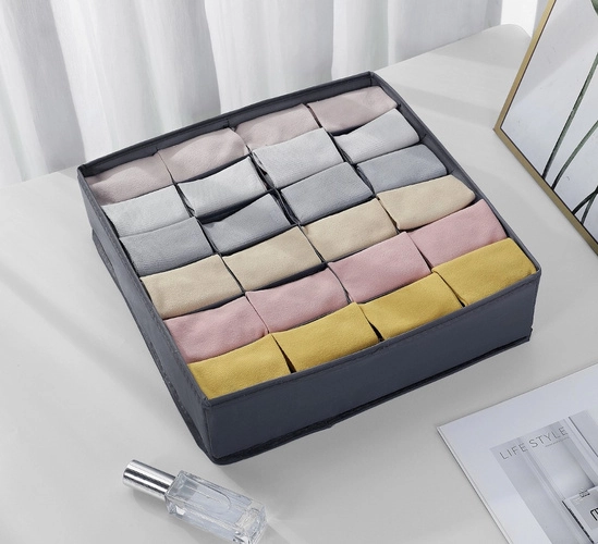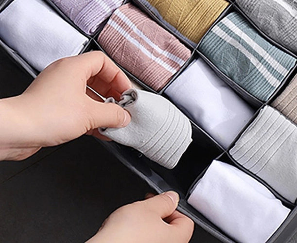 Hver organisator har et forskelligt antal rum til specifik brug – fra strømper og trusser til bh’er og slips. De forstærkede sider holder formen, mens boksene stadig er nemme at folde sammen og lægge væk, når du ikke bruger dem.