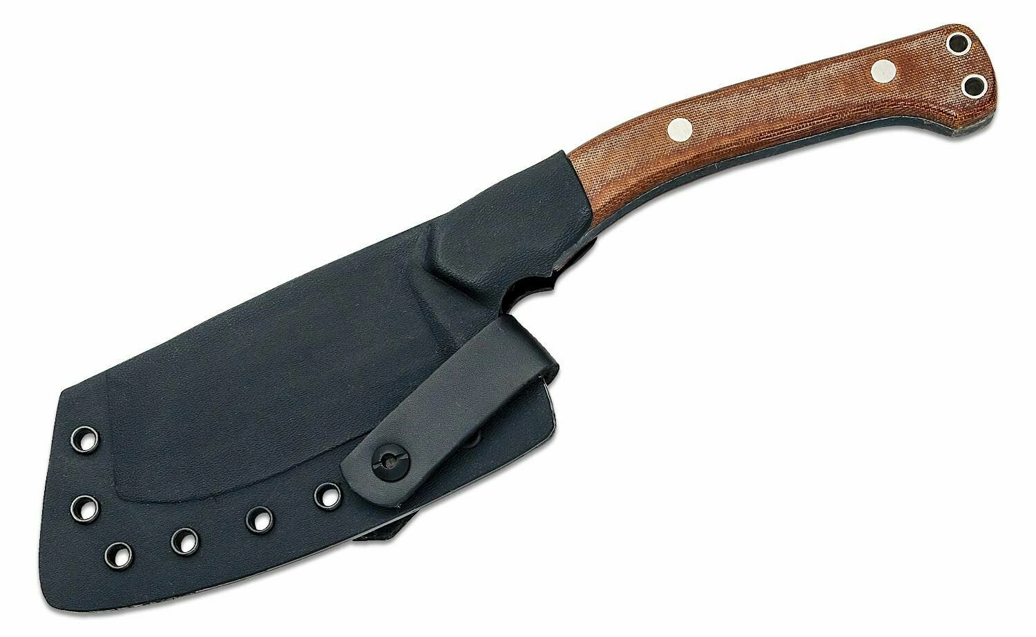 Det ergonomiske skæfte i Micarta i brun farve ligger fremragende i hånden selv i vådt vejr, og to gennemgående huller muliggør fastgørelse af snor for øget sikkerhed. Kniven leveres med en robust termoplastskede og et læderbælteophæng, så den altid er lige ved hånden.