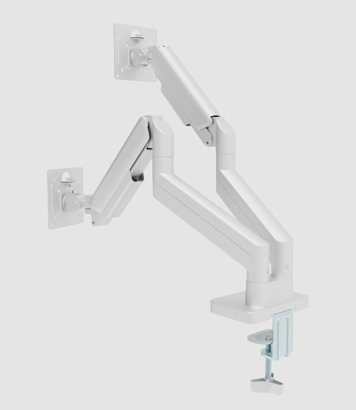 Dobbelt bordarm til skærme 17–32" med gasfjeder, hvid