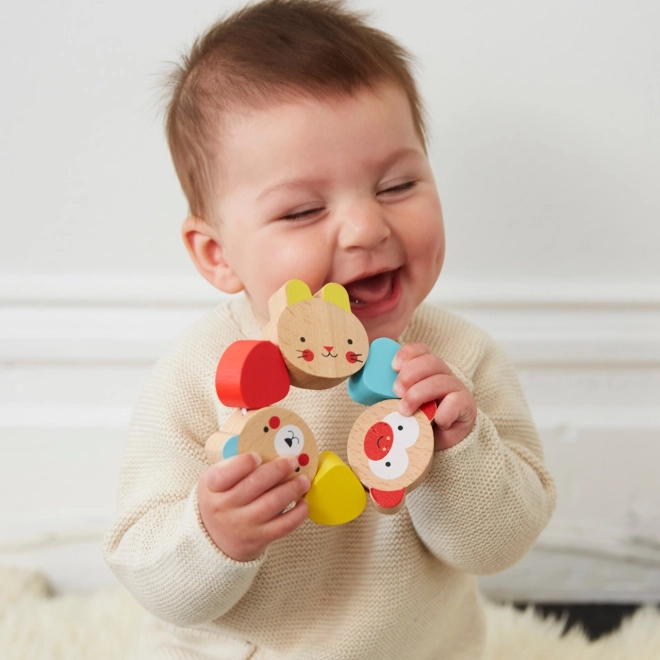 Denne magiske bidering er ideel til små opdagelsesrejsende, der begynder at lære verden omkring sig at kende. Bideringen består af seks dele af solidt træ, heraf tre dyremotiver og tre farvede former, som er forbundet med en stærk snor.