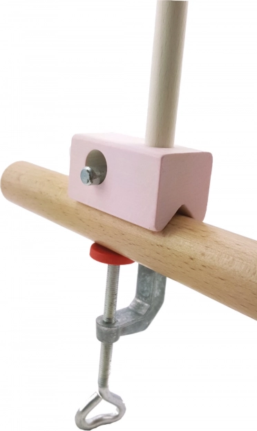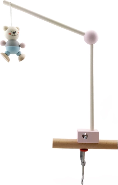 Stilfuld og funktionel holder til uro/over-seng mobile, som nemt fastgøres med en robust metalklemme. Takket være det universelle spænd passer den til de fleste tremmesenge og møbler. Naturtræ kombineret med lyserøde detaljer passer både i moderne og klassiske børneværelser.
