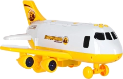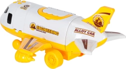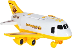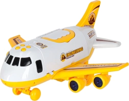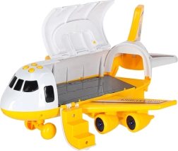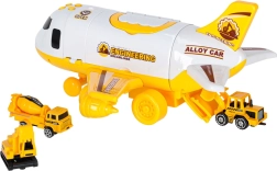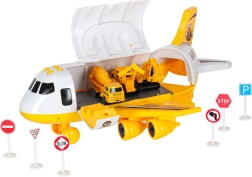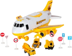 Stort transportfly til børn, som ombord kan fragte tre byggemaskiner og et sæt trafikskilte. Har åbningsbar rampe, sideadgang, LED-lyseffekter og realistiske lyde styret af fire knapper. Takket være aftagelige vinger og praktisk bærehåndtag er det let at bære og opbevare.