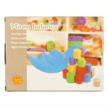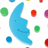 Sjov montessori-leg for både børn og forældre: en træbalance-måne, hvor I stabler farvede klodser efter kast med en terning. Udvikler finmotorik, øje-hånd-koordination og rumlig forståelse. Kvalitetstræ med glatte kanter og livlige farver sikrer tryg og glædesfyldt leg.
