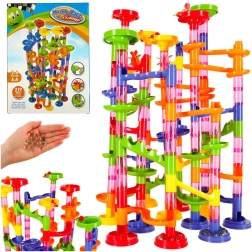 Farverig kuglebane for børn og voksne med 219 XXL-dele tilbyder uendelige byggemuligheder. Byg høje tårne, snoede tunneler og rutsjebaner, og lad kuglerne kapløbe. Støtter kreativitet, rumlig tænkning og finmotorik, perfekt som pædagogisk legetøj og underholdning for hele familien.