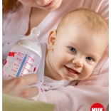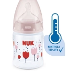 Temperaturkontrol hjælper forældre med at opnå den optimale temperatur og dermed sikre en tryg og sikker madning af deres barn. Rolig og sikker madning takket være temperaturkontrollen. Når barnet er sultent, bør maden i flasken hverken være for varm eller for kold. Derfor kontrollerer mødre og fædre temperaturen før hvert måltid. Det er ikke altid let at vide, hvornår maden har den rette temperatur. Derfor er NUK First Choice+ sutteflasker udviklet med temperaturkontrolfunktion. Denne funktion har ikke tidligere været præsenteret på denne måde. NUK First Choice+ sutteflasker er nu udstyret med en ny temperaturindikator, som hjælper med at undgå, at dit barn drikker for varm mad. Indikatoren ligner et termometer, er placeret mellem skalaerne, og flaskens indholdstemperatur ændrer dens farve. Denne funktion hjælper forældre med at opnå den optimale temperatur ved madning af deres barn. Hvis maden er for varm, skifter den blå indikator til hvid. Ideelt set bør maden have kropstemperatur (37 °C), hvilket svarer til blå farve på displayet. Bemærk: Temperaturkontrollen er beregnet som ekstra kontrol. Før madning skal temperaturen også kontrolleres manuelt. For at kontrollere temperaturen anbefaler vi at dryppe et par dråber af flaskens indhold på indersiden af håndleddet. Den mest naturlige sut for dit barn. First Choice-flasker har i mange år været førstevalget til flaskemadning med inspiration fra amning. Med First Choice+ er vi kommet endnu tættere på naturen – de muliggør sund kæbeudvikling, og barnet føler, at det drikker fra moderens bryst. Naturligt og korrekt formet til kæben. Den unikke form på NUK-sutterne er modelleret efter moderens brystvorte under amning. Sutten giver tilstrækkelig plads til de naturlige sugebevægelser i barnets tunge og kæbe. Blød som moderens bryst. Silikonesutten er takket være den nye bløde zone endnu bedre formet til ganen i dit barns mund og giver en naturlig drikkefornemmelse. Forebygger kolik. Det forbedrede Anti-Kolik Air System sikrer et jævnt flow af væsken uden luftindtag. Klinisk testet. Takket være suttes form, der er usædvanligt naturlig, accepteres den meget godt af børn. Det betyder, at den er særligt velegnet til børn, der både ammes og får flaske samtidig. Sutteflaske. Praktisk NUK-temperaturdisplay, der skifter farve fra blå (kold) til hvid (for varm) fri for skadelige stoffer og lugt – indeholder ikke BPA let at fylde og rengøre – ekstra bred flaskemund sikker greb og stabilitet – takket være den let ergonomisk formede flaske og brede bund ubegrænsede kombinationsmuligheder – kompatibel med alle NUK First Choice produkter. Videnskabelig undersøgelse: Moral m.fl. BMC Pediatrics 2010, 10:6. Flere oplysninger findes på http://nuk.com/research. Uafhængig markedsundersøgelse med 205 børnelæger, Tyskland 2018. 99 % af mødre bekræftede, at NUK First Choice+ Control-flasken ikke forårsager kolik. Hovedegenskaber: flaskens indholdstemperatur ændrer farve: hvis maden er for varm, skifter den blå indikator til hvid ideel til barnets kæbe, sut af ekstra blød silikone, 0–6 måneder M (medium åbning = til babymad) klinisk testet: til optimal kombination af amning og flaskemadning attraktivt design