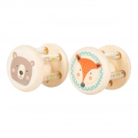 Dette sæt med to SMALL FOOT rangler i naturligt træ med pastelfarvede dyremotiver forener tidløst design og funktionalitet. Takket være de gennemsigtige rør er de farvede perler hele tiden synlige og skaber en beroligende lyd ved hvert ryst. Ranglerne ligger perfekt i barnets hånd og støtter hånd-øje-koordination samt de første gribebevægelser.