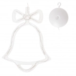 Gør vinteraftenerne hyggeligere med en elegant hængedekoration formet som en klokke. Integrerede LED'er med varmt hvidt lys skaber en magisk atmosfære i dit hjem. Takket være batteridrift og sugekop kan du nemt placere den på vindue, dør eller væg – uden kabler og uden besvær.