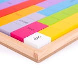 Denne didaktiske træhjælp forener leg og læring – børn kan bogstaveligt talt “mærke” tallene, hvilket hjælper dem til en dybere forståelse af deres betydning. Tabelen understøtter logisk tænkning, visuel perception og finmotorik og motiverer samtidig til selvstændig udforskning af relationer og proportioner mellem tal.