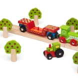 Dette farverige sæt bringer endnu mere fantasi ind i børnenes jernbaneunivers. Traktoren kan tages af vognen og bruges i leg på gården, eller lastes via lastefladen og sendes afsted på skinnerne. Takket være de magnetiske koblinger forbindes vognen hurtigt med lokomotiv og øvrige vogne, så udvidelse af den eksisterende togstamme klares på et øjeblik.
