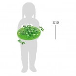 Det farverige træbræt formet som en frø med blomster og smådyr motiverer til leg og stimulerer fantasien. Takket være den overskuelige placering af hullerne kan børnene nemt finde rundt.