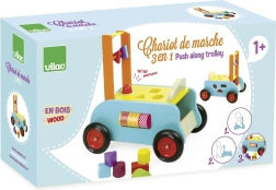 Den stilfulde trævogn fra VILAC kombinerer funktionerne gåvogn, løbecykel og puttekasse. Takket være den stabile konstruktion, de store gummihjul og det komfortable sæde med lille ryglæn er den ideel til de første skridt og kørsel. Farverige drejeelementer, formindsætning og en horn med lydeffekter udvikler børns motorik, sanser og rumlige forestillingsevne.