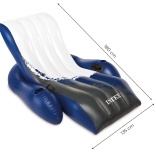 Den oppustelige stol fra INTEX kombinerer komforten fra en loungestol med stabiliteten fra en vandstol. Det høje ryglæn, de formede armlæn og de segmenterede kamre giver behagelig støtte til ryg og arme, mens to kopholdere sørger for komfort under afslapning både på vandet og på land.