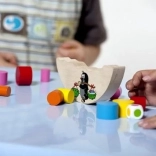 Nyd timer af sjov med træbalancespillet Detoa Krtku, spild ikke! . Lavet af kvalitets træ, styrker dette legetøj ikke kun børns motoriske færdigheder, men tilbyder også berigende spilleoplevelser. Terningen bestemmer farven på klodsen, som spilleren skal placere på brættet uden at få det til at falde.