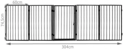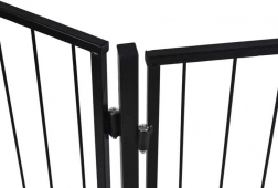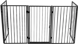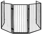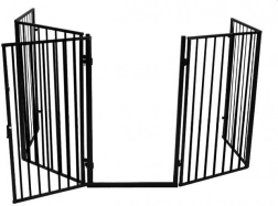 Praktisk sikkerhedsgitter til pejsen beskytter børn og kæledyr mod varme overflader og åben ild. Takket være fem hængslede segmenter kan det nemt tilpasses rummet, det har nem vægmontering, sikring mod utilsigtet åbning og er kompatibelt med de fleste pejse. Robust stålkonstruktion i sort, samlet bredde 304 cm og højde 74,5 cm giver pålidelig beskyttelse i stuen.